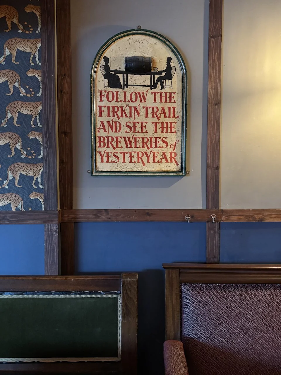 This place is massive. There’s a big picture of Jimi Hendrix, but it’s the other decoration that takes my fancy, including a few bits that date back to when it was part of the original Firkin chain (the current pub and brewery has no connection to Bruce’s chain, except that it has inherited the name). There’s a newspaper rack, entitled “Firkin Newspapers” (there are no newspapers in it). There’s a wooden sign reading “Follow the Firkin Trail and see the breweries of yesteryear.” And there’s a partially obscured sign apparently advertising takeaway Dogbolter, featuring the classic pissed-up bulldog branding.
