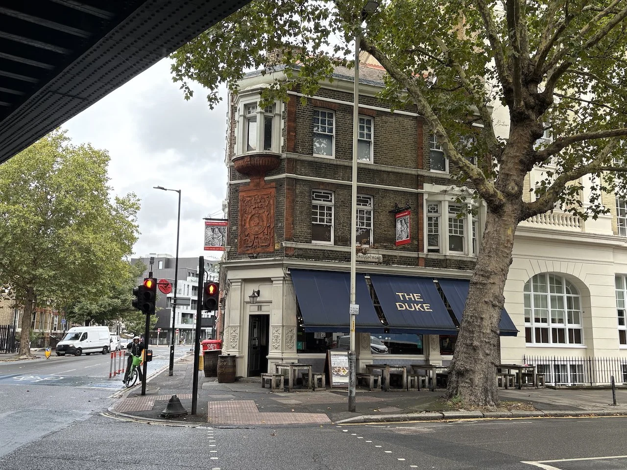 The pub has more character than the beer, happily, although largely courtesy of its location. There’s an appealingly basic railway bridge right outside, and regular buses scoot past the front door: the 344 to Clapham Junction is very busy! Inside, it’s a big open room, with lots of high tables and a worn wooden floor - worn enough that it may be the pub’s sole remnant of the Firkin years, with the exception of the Duke of York frieze above the main entrance.