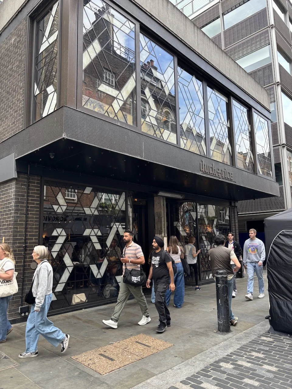 It was Saturday afternoon and Soho was absolutely alive. The Nellie Dean has dozens of customers necking pints outside, and the Blue Posts on Broadwick Street was if anything even busier. Down on Frith Street, Ronnie Scott’s was throwing a street party and the atmosphere was near-manic. Everywhere there were people wearing Oasis gear (the Peroni of rock bands lol lol lol, only teasing. Seriously, though, those lads must be making a killing).