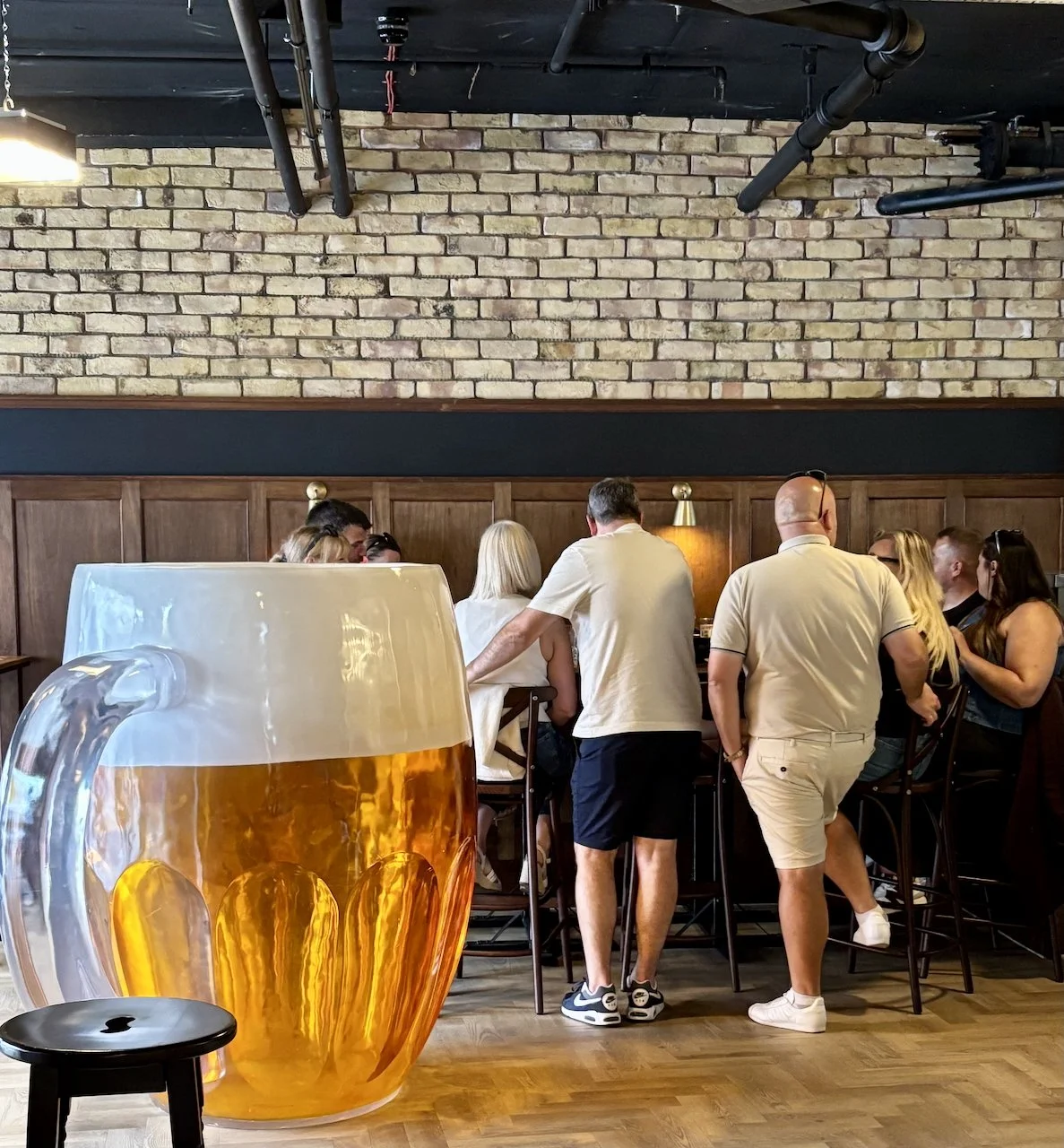 The clientele on this unsettled Saturday afternoon are a mixture of people who have been watching the Lions rugby team and people who are going to the Oasis concert later. Maybe some are doing both! There’s a big group from Ulster, standing next to the pub’s impressive fibreglass pivo. A woman whoops with glee when she finds the accessible toilet. The tunes are classic British pop, from A Town Called Malice - a man in an Oasis t-shirt does a little dance - to Too Shy Shy.